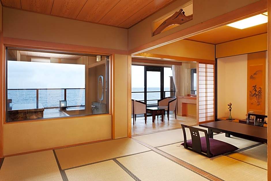 This quadruple Japanese-style room has an electric kettle and air conditioning. This room features a French-style dinner and a sea view.
